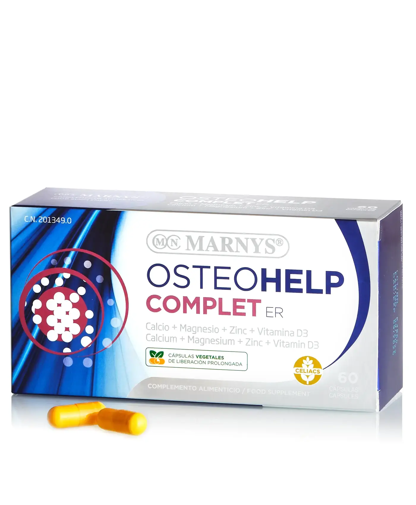 Osteohelp Complet ER din gama MARNYS® este un Supliment cu 6 Minerale: Calciu, Magneziu, Zinc, Cupru, Mangan, Seleniu, fiind îmbogățit cu Vitamina D3, pentru maximizarea absorbției. Formulă Specială sub formă de capsule cu Eliberare Prelungită. Fabricat în Spania la cele mai Înalte Standarde GMP. Nu conține gluten, lactoză sau organisme modificate genetic.