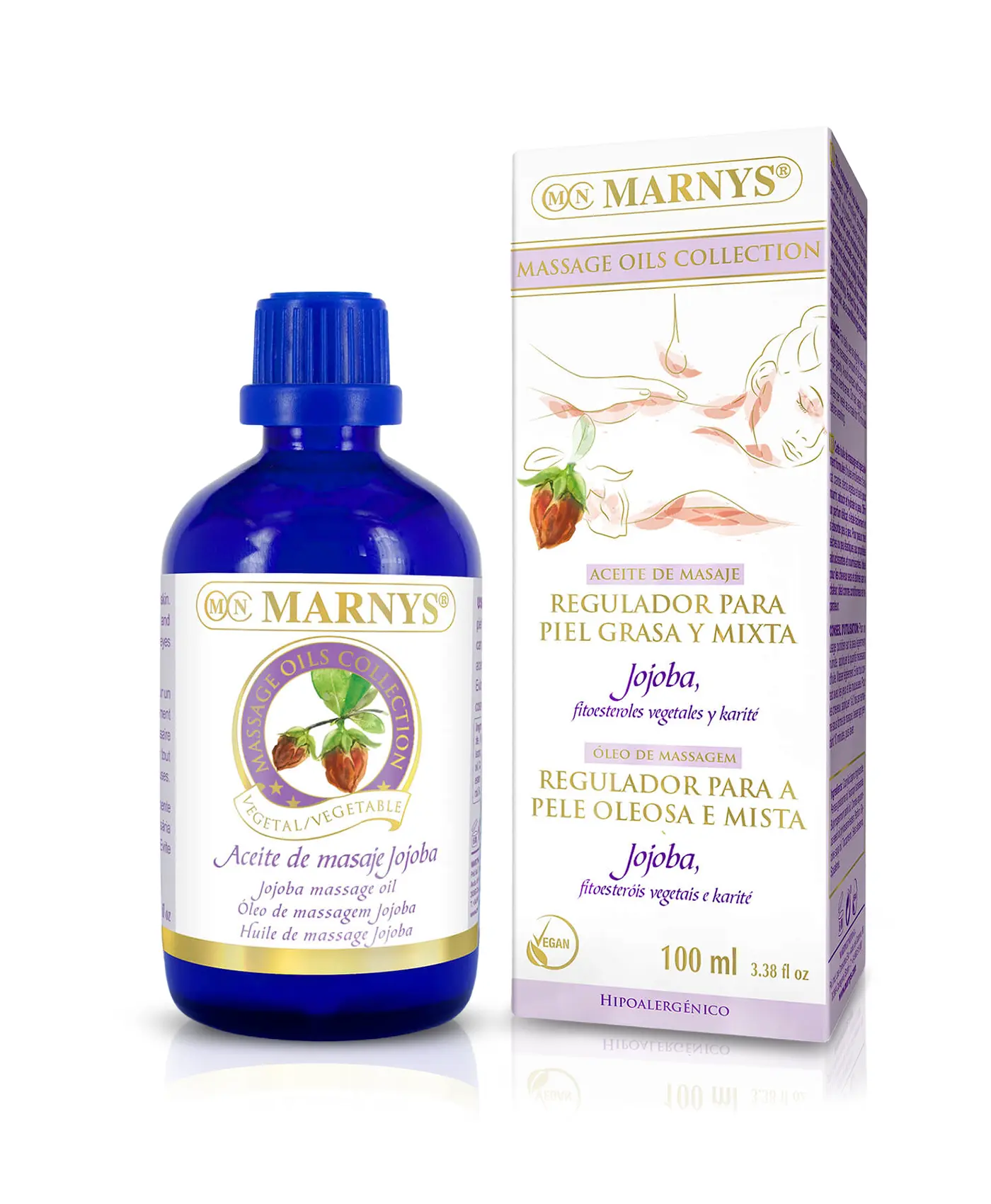 Uleiul de masaj Jojoba din gama Marnys este special conceput pentru tenul gras si mixt, cu tendinta acneica. Normalizeaza secretia de sebum de la suprafata pielii, hidrateaza in profunzime si imbunatateste aspectul tenului. Parfum delicat si textura lejera, se absoarbe rapid in piele. Potrivit pentru vegani, produs 100% organic si natural.