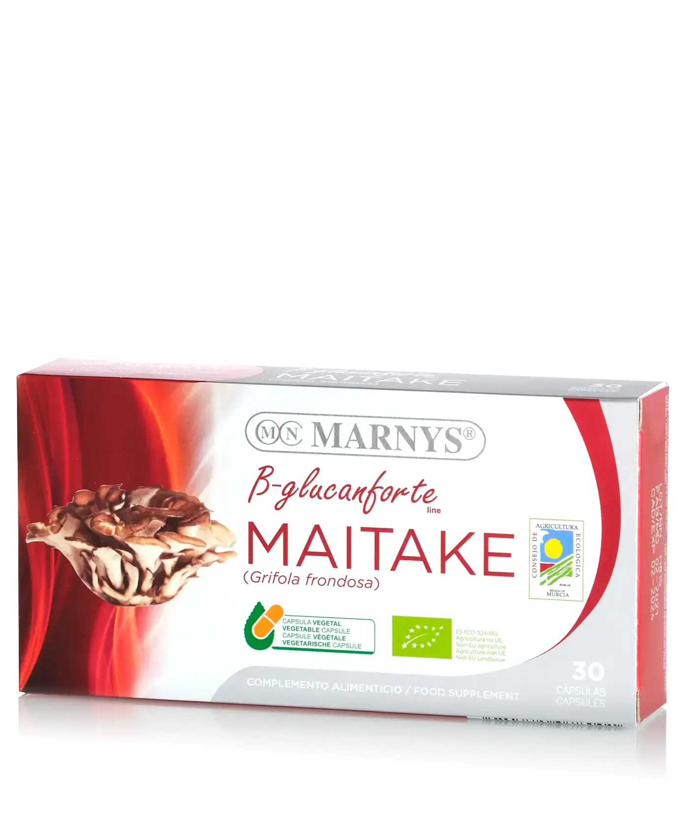 Maitake din gama MARNYS® este un supliment obținut din culturi organice care reglează procesele imunitare ale organismului și susține sistemul gastro-intestinal. Conține extract din Grifola frondosa (raport 8:1), una dintre cele mai apreciate ciuperci comestibile, cu o mulțime de compuși bioactivi în compoziție: polizaharide (în special, beta-glucani), fenoli și flavonoizi, α-Tocoferol, proteine, vitamine și minerale. Produs Bio, 100% Natural. fabricat în Spania la cele mai înalte Standarde GMP. Nu conține gluten, lactoză sau organisme modificate genetic.