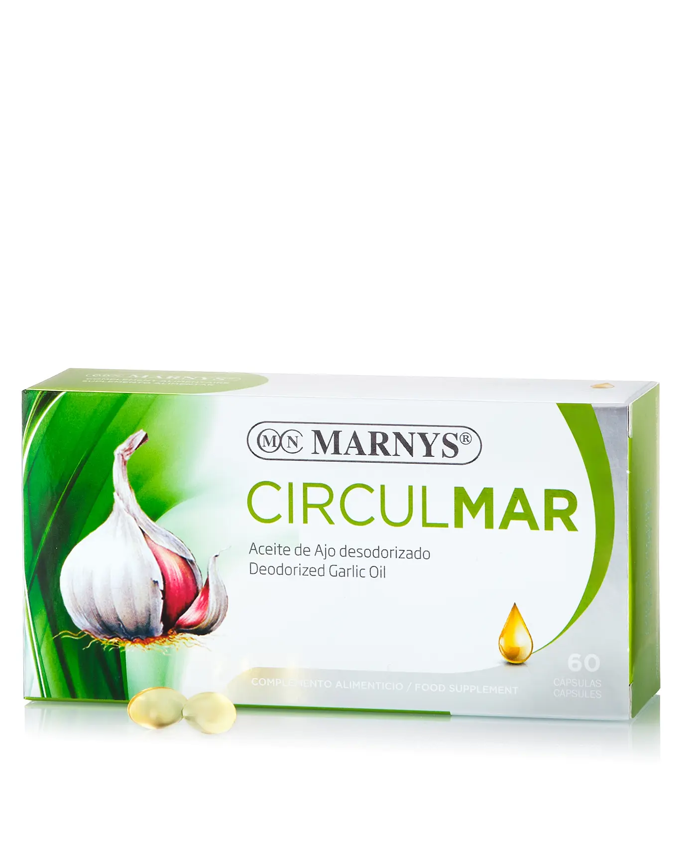Circulmar din gama Marnys este un supliment concentrat pe baza de ulei de usturoi sub forma de capsule softgel cu 1000 mg. Contribuie la mentinerea sanatatii cardiovasculare, imbunatateste circulatia sangelui si mentine nivelul colesterolului in limite normale. Este dezodorizat, nu are gust sau miros specific usturoiului. Nu contine gluten, lactoza sau organisme modificate genetic. Produs 100% vegetal, potrivit pentru utilizarea de catre persoanele vegane.
