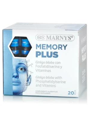 Memory Plus din gama MARNYS® este un Supliment Lichid sub formă de Fiole Buvabile recomandat tuturor celor care se confruntă cu probleme de memorie sau concentrare. Contribuie la Funcționarea Optimă a Sistemului Nervos, a Funcției Cognitive, Îmbunătățește Nivelul de Energie al organismului și Circulația Sangvină. Produs Vegan, Fabricat în Spania la cele mai Înalte Standarde GMP. Nu conține gluten, lactoză sau organisme modificate genetic.
