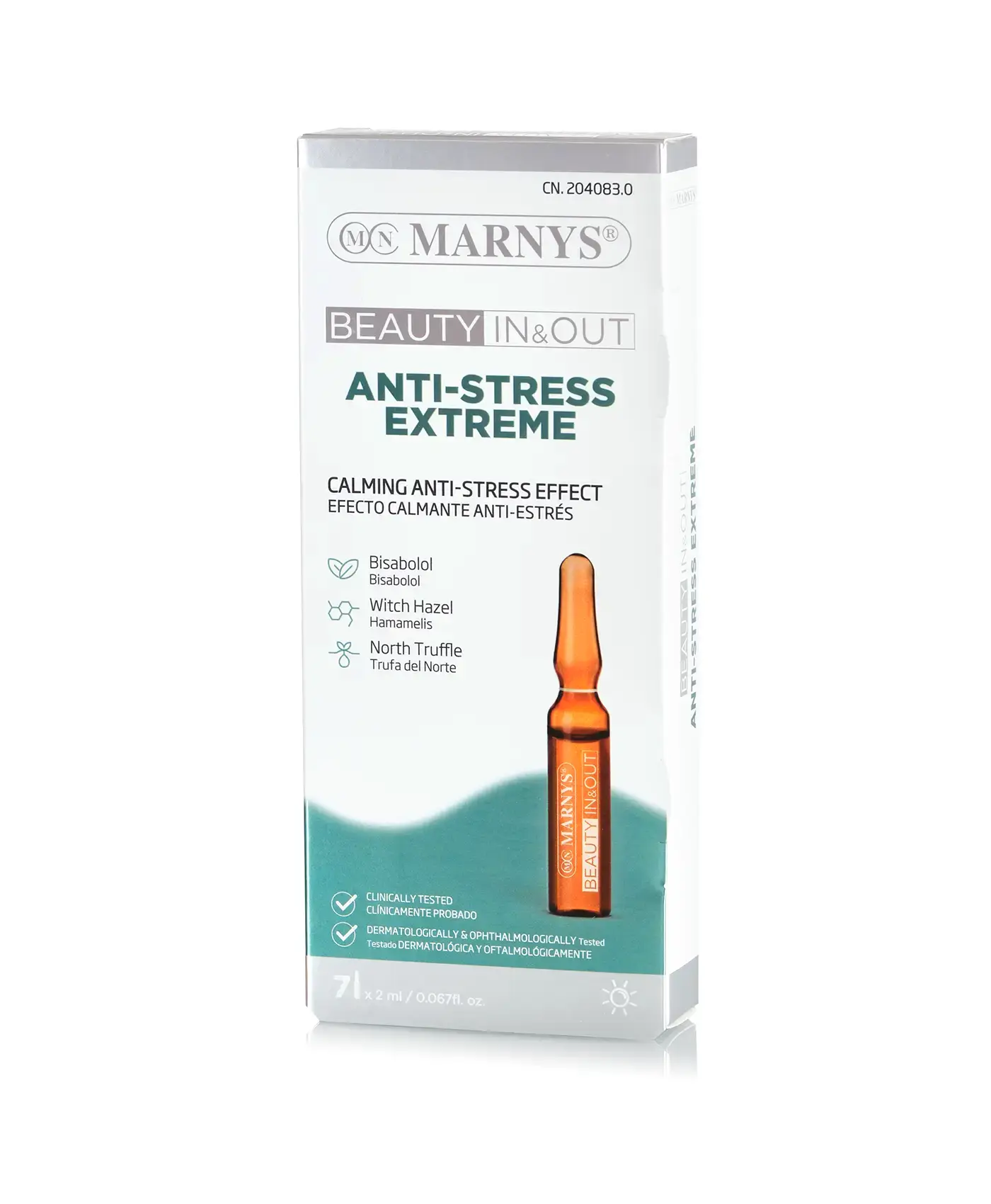 - ANTI-STRESS EXTREME din gama MARNYS® Beauty In & Out calmează și protejează pielea sensibilă predispusă la iritații. Formula sa inovativă oferă confort imediat, ameliorând senzațiile de arsură și mâncărime, reducând roșeața și restabilind aspectul plăcut al pielii.